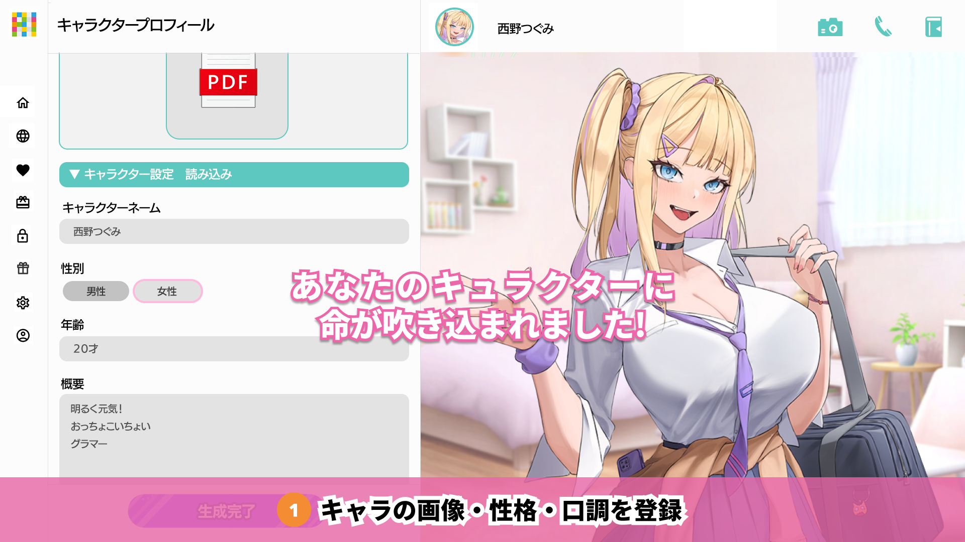 イラストを投稿するだけで、あなたのキャラがエッチなAIキャラとして動き出します。